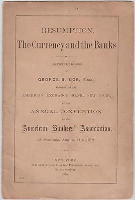 Pamphlet Currency & Banks George Coe 1879 Amer Bankers Assoc Convention Saratoga