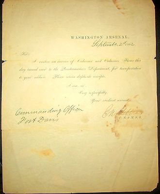 1862 Washington Arsenal Document Civil War Fort Davis Signed Transportation