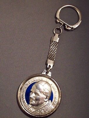 Title (ebay affiliate link): Vintage Pope John Paul II Vatican Silver Key Chain Blue backing/Mesh chain
