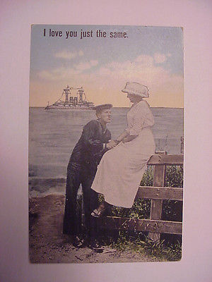 Title (ebay affiliate link): Lovers Early 1900s Postcard Sailor I Love You Just The Same Romance Love