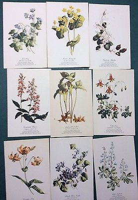 9 very nice, unused wild flower postcards