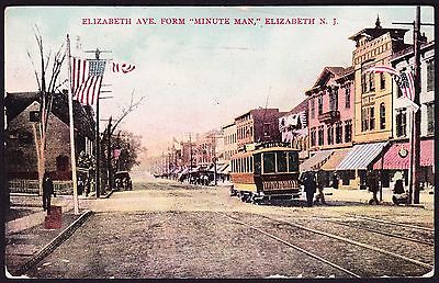 Title (ebay affiliate link): Elizabeth NJ - " Minute Man " Elizabeth Avenue American Flag trolley mailed 1909