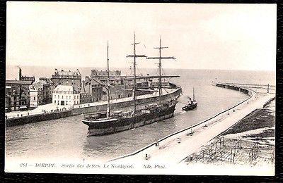 DIEPPE SAILING SHIP LEAVING HARBOUR PRINTED POSTCARD