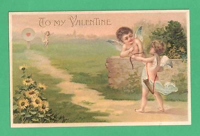 Title (ebay affiliate link): VINTAGE VALENTINE'S DAY POSTCARD CUPIDS ARCHERY LESSONS HEART-TARGET FLOWERS