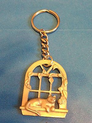 Vintage "Cat in Window" Seagull pewter Canada Keychain Necklace
