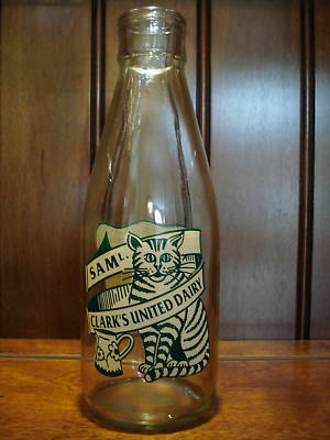 VINTAGE MILK BOTTLE SAM CLARK UNITED DAIRY ENGLAND CAT