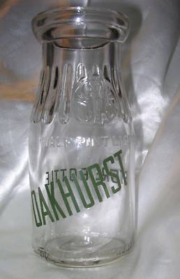 Half Pint Cream/Milk Bottle Green Pyro Oakhurst Maine