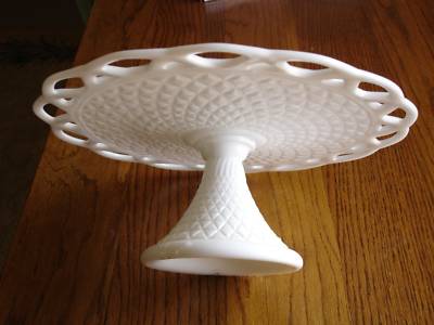 Cake plate/stand Milk Glass Lace Edge Vintage 12"