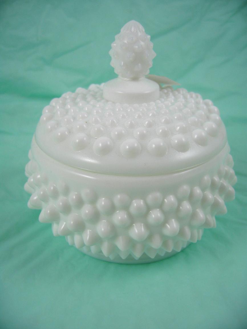 Fenton HOBNAIL Powder Puff Box With Lid MILK GLASS NR