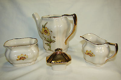 Warranted 24k gold trim Tea Pot,creamer & sugar Set ,Floral Print