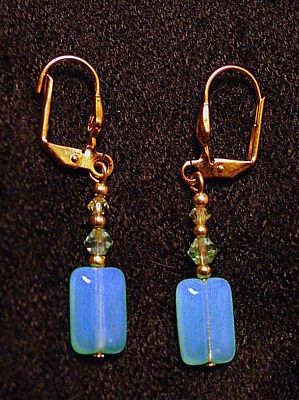 RARE AQUA MILK VASELINE GLASS EARRINGS! GLOWS!