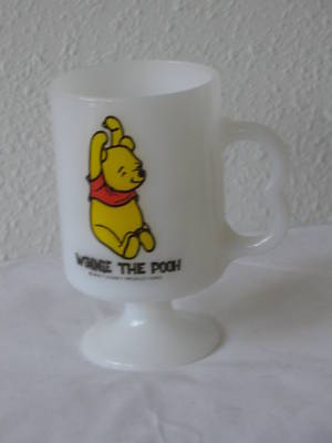 DISNEY WINNIE POOH MILK GLASS FIRE KING PEDESTAL CUP