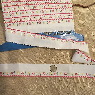 VINTAGE COTTON TRIM 2 Y MDE FRANCE EMB FLORAL ,SCALLOP EDGE DOLL QUILTS