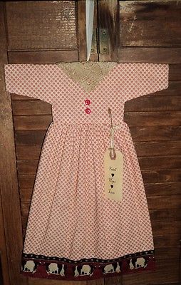 Title (ebay affiliate link): GRUNGY~PRIMITIVE WALL~CUPBOARD~DOLL DRESS RED FLORAL COWS FOLK ART DECOR