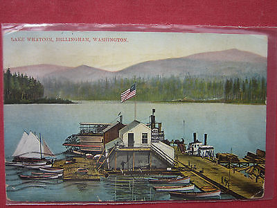 LAKE WHATCOM,BELLINGHAM,WASHINGTON / BOATS at DOCK coloured postcard c.1910's