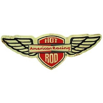 RETRO COLLECTIBLE EMBOSSED WINGED METAL SIGN "AMERICAN RACING" HOT ROD (GARAGE)