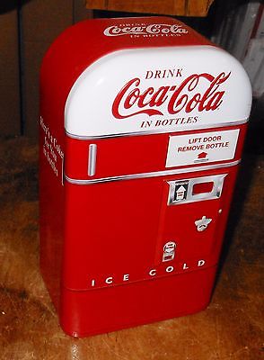Title (ebay affiliate link): 2009 Coca Cola Vending Machine Shaped Advertising/Promotional Hinged Tin