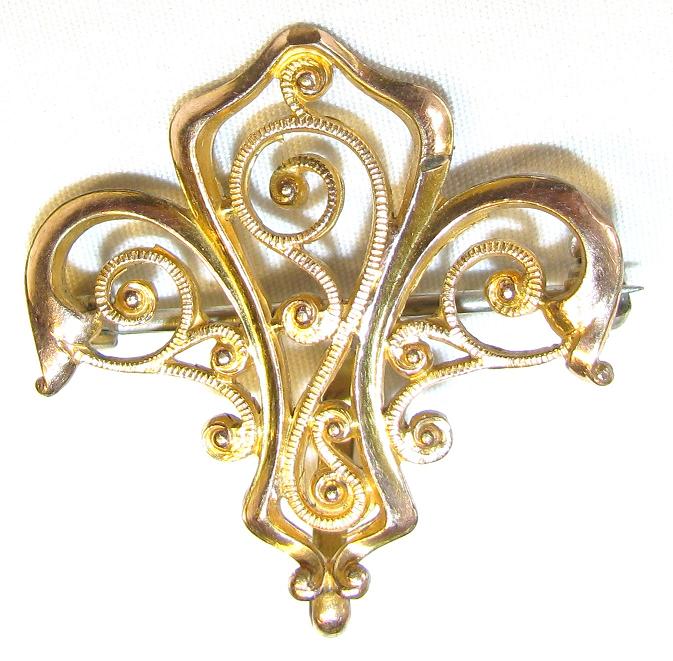 ORNATE ANTIQUE GOLD FILLED CHATELAINE WATCH LOCKET PIN