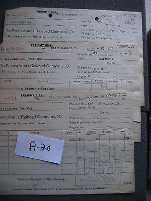 Title (ebay affiliate link): PENNSYLVANIA RAILROAD THREE 1902 FREIGHT BILLS WILLIAMSPORT PA LOT A-20