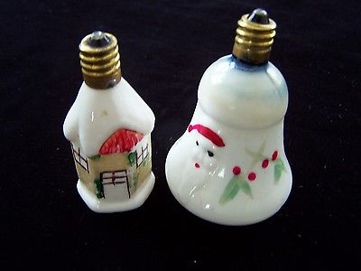 2 Vintage Milk GLASS FIGURAL Christmas Light Bulbs BELL & HOUSE Japan WORK GREAT