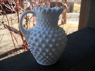 RARE FENTON MILK GLASS SYRUP PITCHER CRIMPED HOBNAIL DESIGN