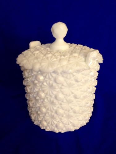 Vintage Milk Glass Daisy+Button Lidded Canister~Perfect!