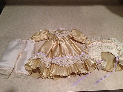 Vintage Golden Satin and Lace Doll Dress Bonnet for Doll Antique, Porcelain