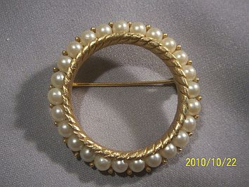 Title (ebay affiliate link): *Antique TRIFARI GT,Faux Pearl Circle Of Life Brooch*