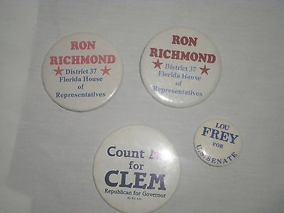 Vintage Florida Campaign Button Pin Lot Clem 4 Gov Lou Frey Senate Ron Richmond