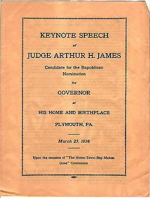 Pennsylvania 3 Arthur James Paper Items Governor 1938 Presidential Candidate