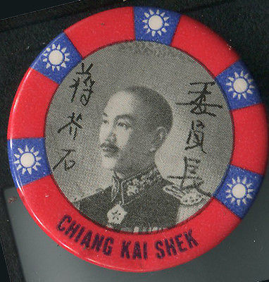CHIANG KAI SHEK CHINESE RED, WHITE, BLUE VINTAGE CAUSE PIN