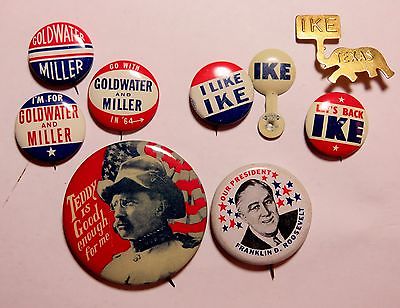 Title (ebay affiliate link): IKE GOLDWATER MILLER TEDDY ROOSEVELT FRANKLIN D ROOSEVELT BUTTONS