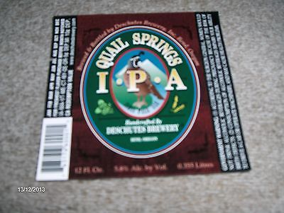 Title (ebay affiliate link): Beer label DESCHUTES brew QUAIL SPRINGS INDIA PALE ALE
