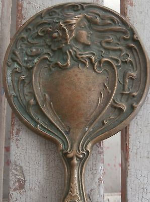 Title (ebay affiliate link): Antique Art Nouveau Lady Bronze/ Brass/Copper Round Hand Beveled Mirror Engraved