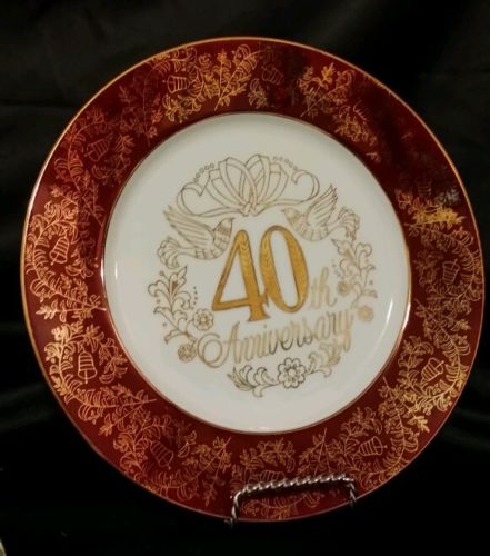 Title (ebay affiliate link): Norcrest 40th Wedding Anniversary Fine Chatillon Porcelain Ruby Gold 10" Plate