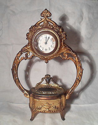 Title (ebay affiliate link): Antique Victorian Figural Jewelry Casket Clock - Gilt Bronze 12" Tall