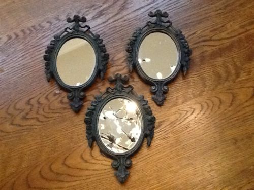Title (ebay affiliate link): Lot 3 Vintage Ornate Metal Oval Mirror Italian Miniature Frame Roses