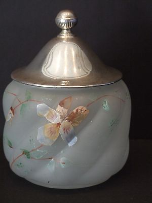 ANTIQUE Victorian FROSTED & ENAMELED PICKLE CASTOR Insert Silverplated Lid