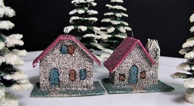 Tiny CARDBOARD Putz HOUSE Christmas Tree Ornaments * Japan * vintage Xmas