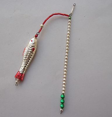 Vintage BOHEMIAN GLASS BEADED FISH ON FISHING ROD CHRISTMAS ORNAMENT