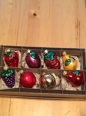 Title (ebay affiliate link): Set of 8 Shiny Glass German Christmas Fruit Ornaments