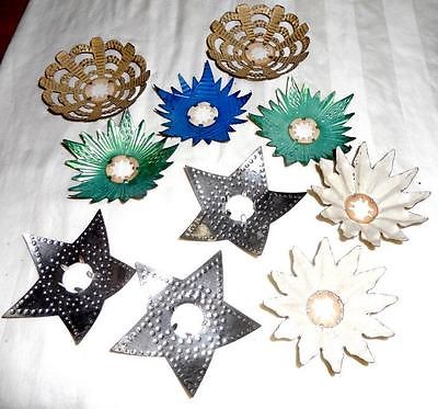 Antique VTG Punched Tin Metal Christmas Tree Light Bulb Reflectors Early (10)
