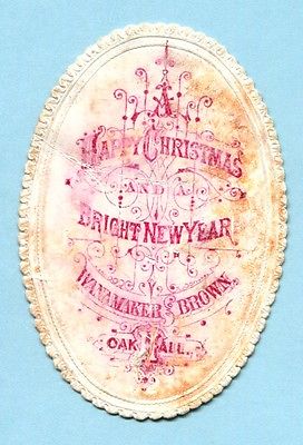 Rare 1860s Coated Card Stock MERRY CHRISTMAS Trade Card WANAMAKER & BROWN