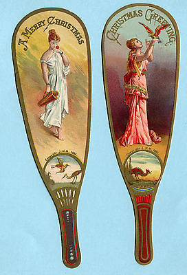 2 1881 DIECUT MERRY CHRISTMAS Colorful Trade Cards WANAMAKER &BROWN Philadelphia