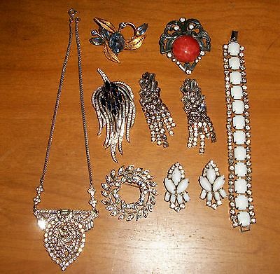 Title (ebay affiliate link): VINTAGE CRAFT REPAIR WEAR LOT 10 PC,RHINESTONE,CLIP EARRINGS,BRACELET,MILK GLASS