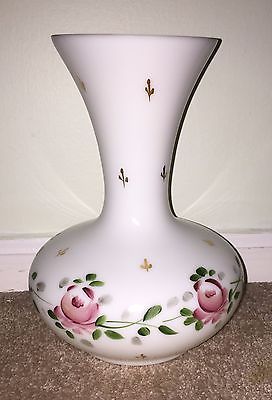 Elegant Large Vintage Consolidated Milk Glass Vase with Charleton Decoration