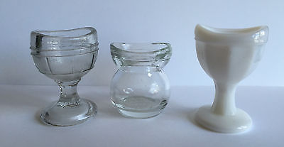 3 Vintage Glass Eye Wash Cups- Milk Glass Pedestal, Clear Pedestal, Clear Short