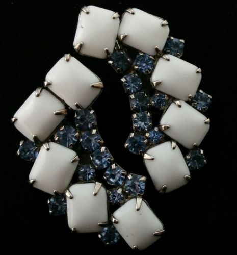 Title (ebay affiliate link): Unsigned WEISS Vintage Clip Earrings Milk Glass Blue Rhinestone PRETTY! 1171