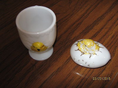 Vintage Milk Glass Egg Cup with Chick and Egg with Chick