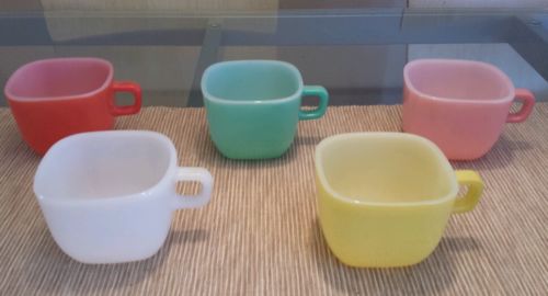 Glass Bake Glassbake Milkglass Mugs Exc. Vintage Condition made in the USA